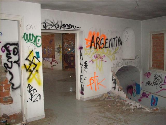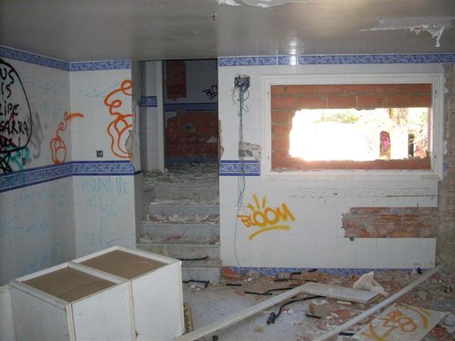 Entramos, se pueden distinguir salones, cocinas, habitaciones y pasillos, eso si, muy vandalizados...+(Small).JPG)